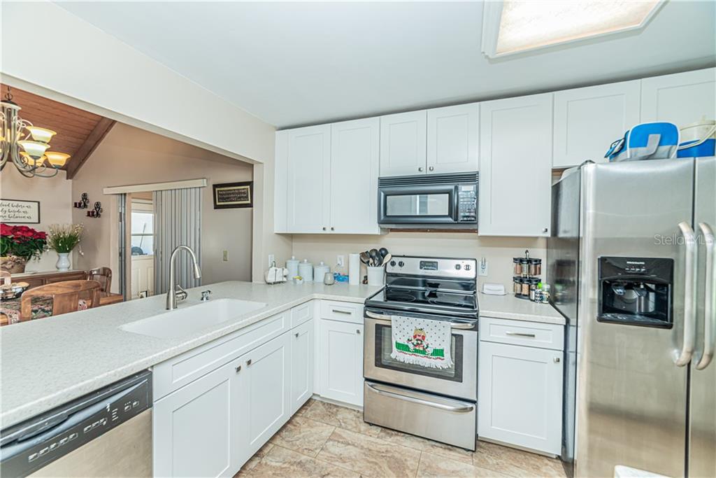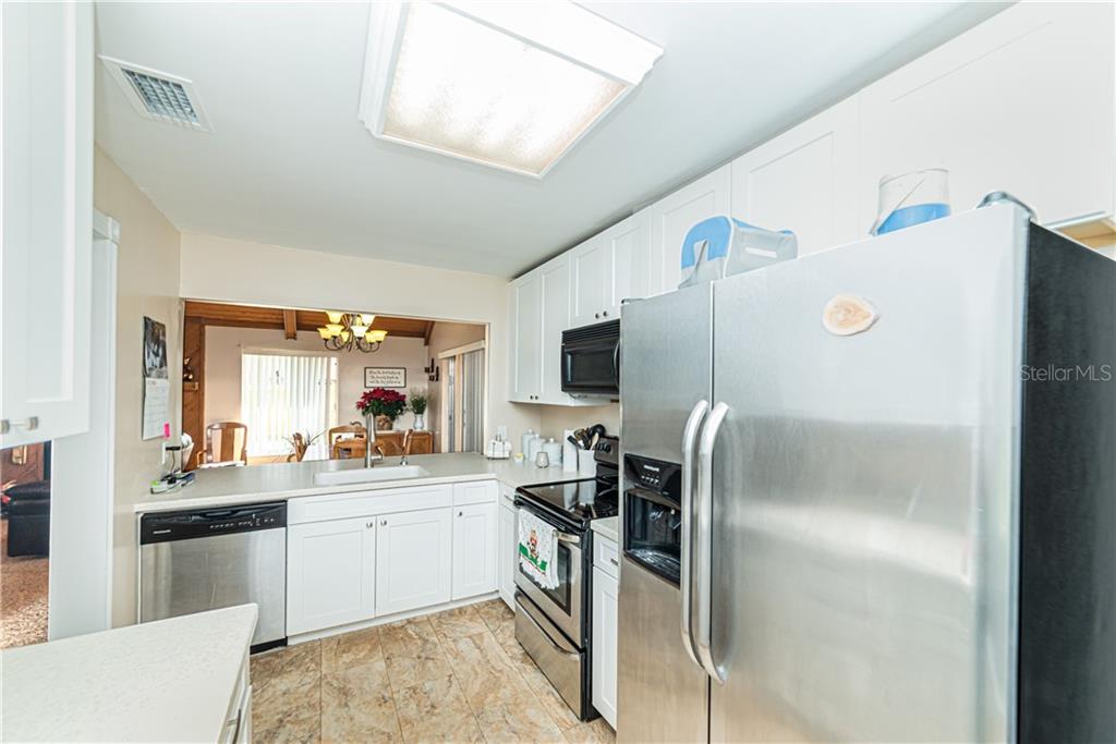 As you enter this spacious and sparkling renovated townhome you will be welcomed by a roomy great room with a wood burning fireplace, soaring ceilings of gorgeous natural wood and a magnificent built-in entertainment center. The chef of the family will love the cozy, fresh Kitchen with sleek white cabinetry accented with Winter White Quartz countertops and a full appliance package. The windows let the natural sunlight in and enhance the beauty of the kitchen.