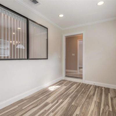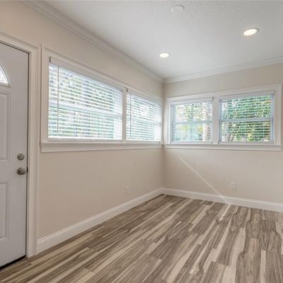 Crown Molding, Living Room/Dining Room Combo, Open Floorplan, Primary Bedroom Main Floor, Solid Surface Counters, Split Bedroom, Stone Counters, Thermostat, Walk-In Closet(s), Window Treatments