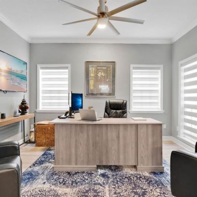 Ceiling Fan(s), Kitchen/Family Room Combo, Stone Counters, Thermostat, Window Treatments