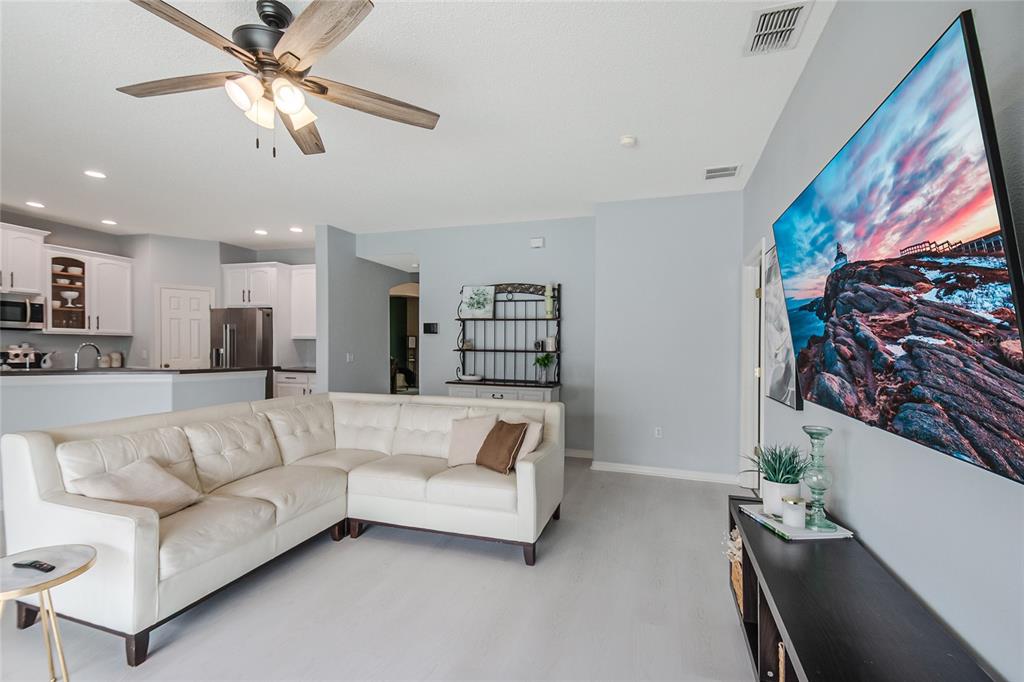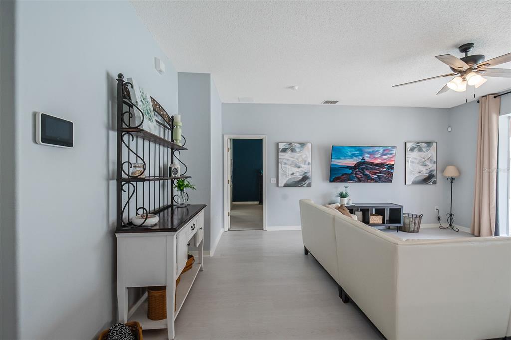 Ceiling Fan(s), Kitchen/Family Room Combo, Living Room/Dining Room Combo, Primary Bedroom Main Floor, Solid Surface Counters, Thermostat, Walk-In Closet(s)