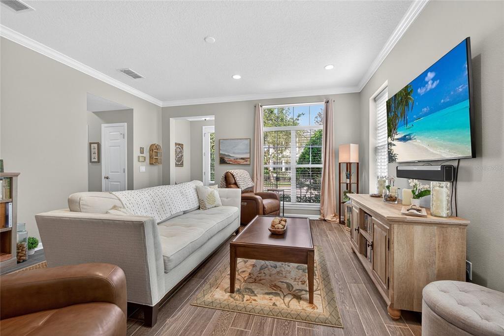 Ceiling Fan(s), Crown Molding, Living Room/Dining Room Combo, Open Floorplan, Primary Bedroom Main Floor, Solid Surface Counters, Split Bedroom, Walk-In Closet(s)