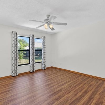 Ceiling Fan(s), Other, Split Bedroom, Tray Ceiling(s), Window Treatments