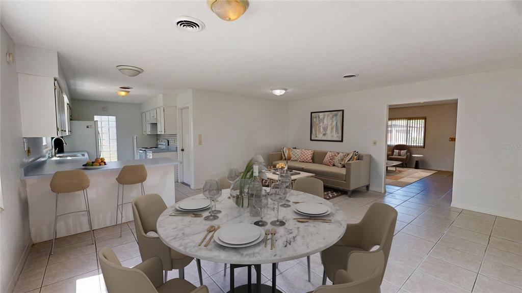 Ceiling Fan(s), Eating Space In Kitchen, Kitchen/Family Room Combo, Open Floorplan, Solid Wood Cabinets, Thermostat