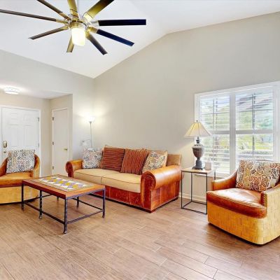 Cathedral Ceiling(s), Ceiling Fan(s), Eating Space In Kitchen, High Ceilings, Living Room/Dining Room Combo, Primary Bedroom Main Floor, Solid Surface Counters, Split Bedroom, Thermostat, Walk-In Closet(s), Window Treatments