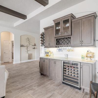 Ceiling Fan(s), Chair Rail, Coffered Ceiling(s), Dry Bar, Kitchen/Family Room Combo, Open Floorplan, Primary Bedroom Main Floor, Solid Surface Counters, Solid Wood Cabinets, Split Bedroom, Tray Ceiling(s), Walk-In Closet(s), Wet Bar, Window Treatments