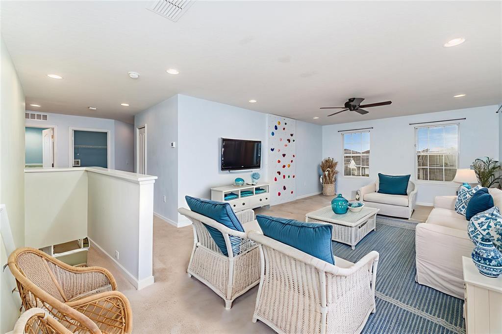 Ceiling Fan(s), Eating Space In Kitchen, High Ceilings, Open Floorplan, PrimaryBedroom Upstairs, Solid Surface Counters, Solid Wood Cabinets, Stone Counters, Thermostat, Tray Ceiling(s), Walk-In Closet(s)