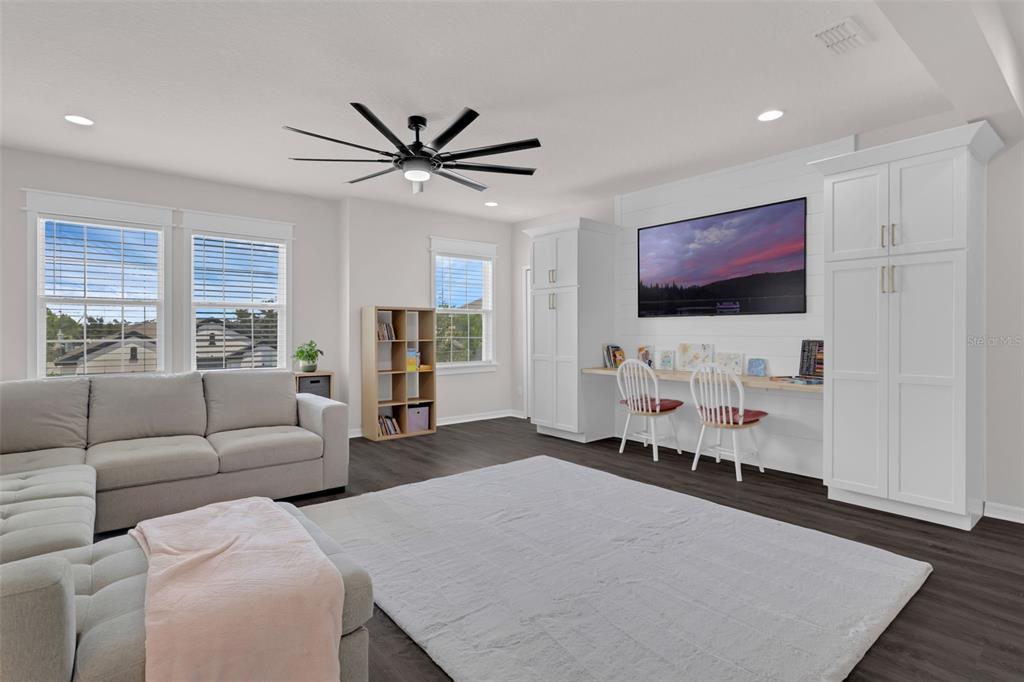 Built-in Features, Ceiling Fan(s), Eating Space In Kitchen, Kitchen/Family Room Combo, Open Floorplan, Solid Surface Counters, Solid Wood Cabinets, Thermostat