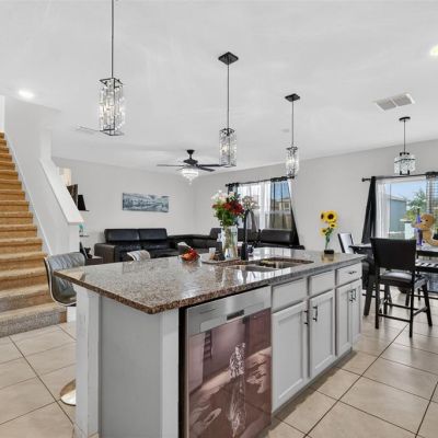 Eating Space In Kitchen, High Ceilings, Kitchen/Family Room Combo, Open Floorplan, PrimaryBedroom Upstairs, Stone Counters, Window Treatments
