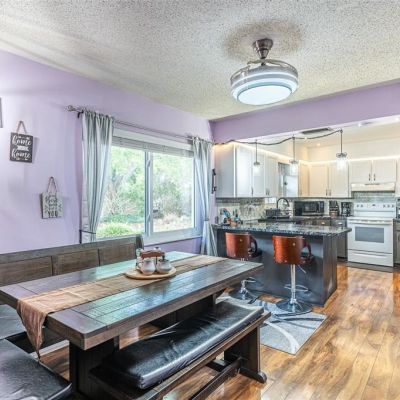 Ceiling Fan(s), Eating Space In Kitchen, Solid Surface Counters