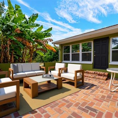 Courtyard, Garden, Lighting, Sidewalk