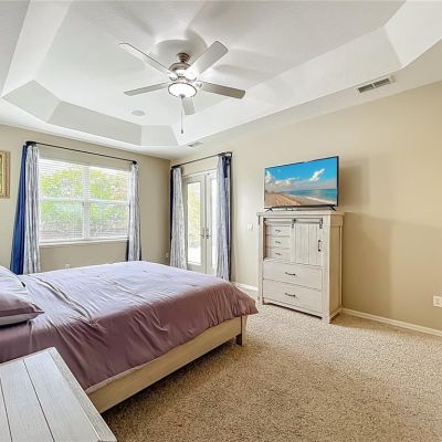 Built-in Features, Ceiling Fan(s), Eating Space In Kitchen, High Ceilings, Kitchen/Family Room Combo, Solid Surface Counters, Split Bedroom, Tray Ceiling(s), Walk-In Closet(s), Window Treatments