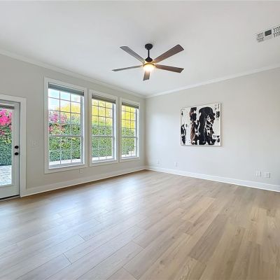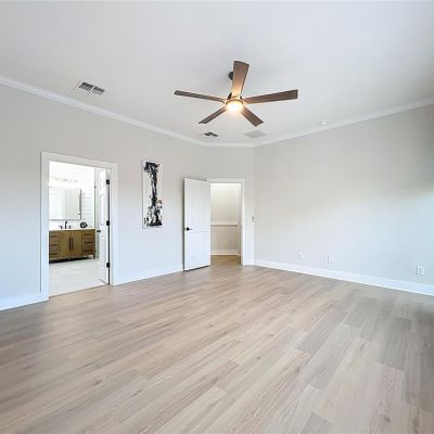 Built-in Features, Ceiling Fan(s), Chair Rail, Crown Molding, Eating Space In Kitchen, High Ceilings, Kitchen/Family Room Combo, Open Floorplan, Primary Bedroom Main Floor, Solid Surface Counters, Split Bedroom, Walk-In Closet(s), Window Treatments