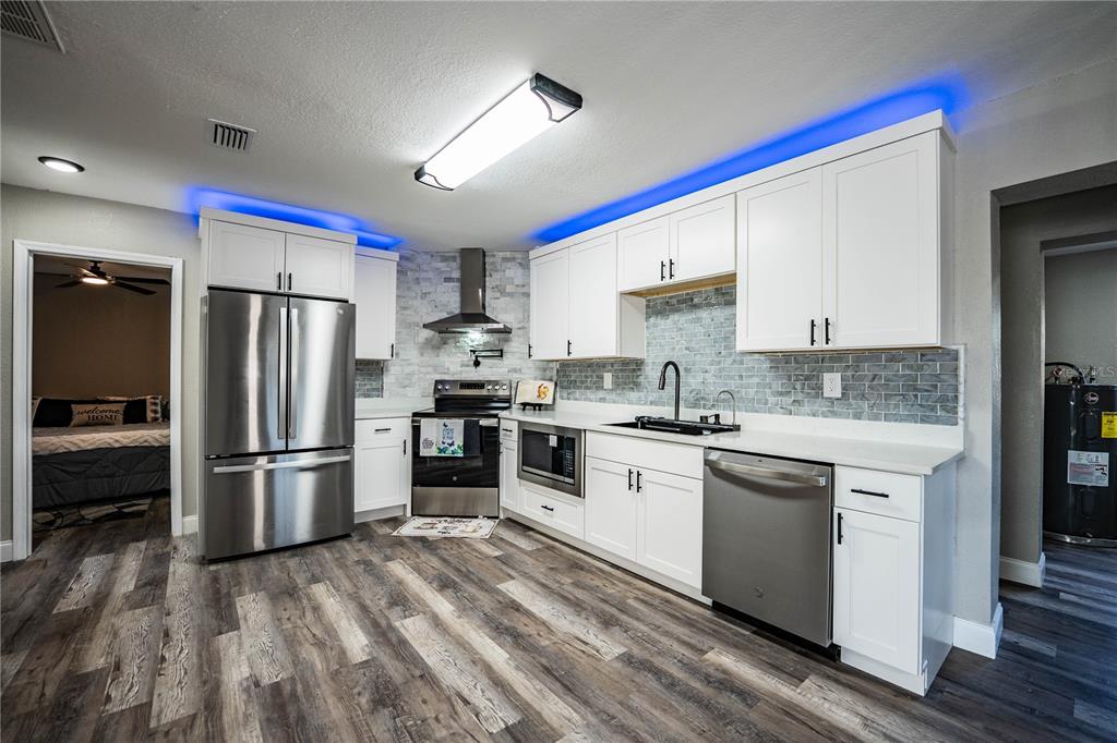 Dishwasher, Electric Water Heater, Exhaust Fan, Microwave, Range, Range Hood, Refrigerator