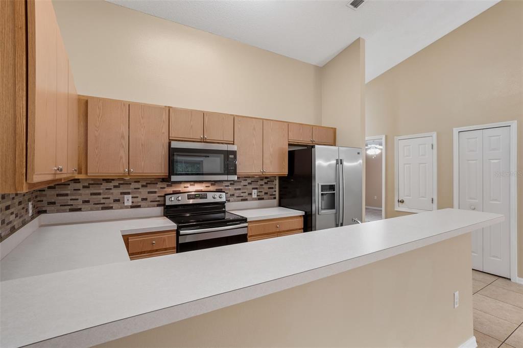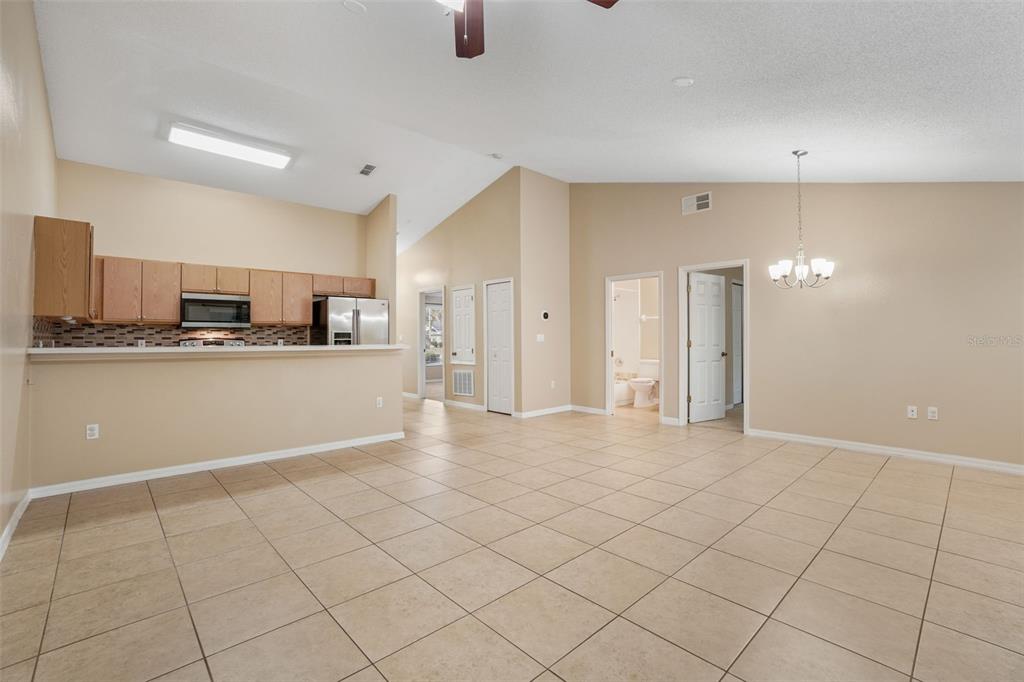 Ceiling Fan(s), High Ceilings, Kitchen/Family Room Combo, Open Floorplan, Solid Surface Counters, Solid Wood Cabinets, Vaulted Ceiling(s)