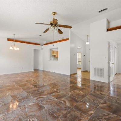 Cathedral Ceiling(s), Ceiling Fan(s), Eating Space In Kitchen, High Ceilings, Living Room/Dining Room Combo, Primary Bedroom Main Floor, Split Bedroom, Thermostat