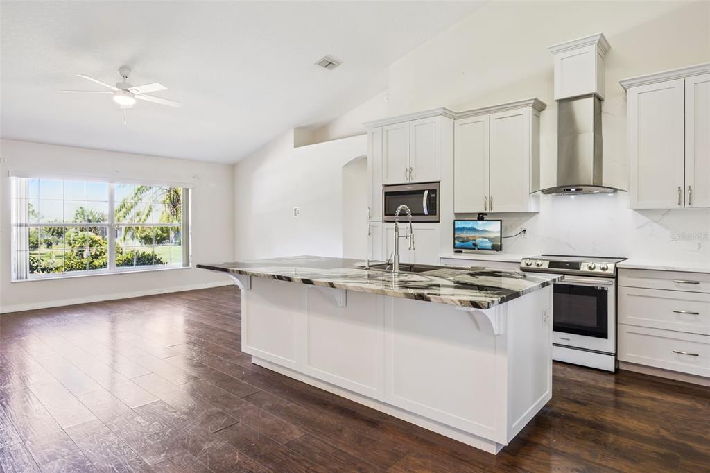 Ceiling Fan(s), Eating Space In Kitchen, Open Floorplan, Stone Counters, Thermostat