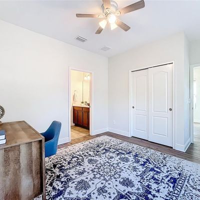 Ceiling Fan(s), Eating Space In Kitchen, Kitchen/Family Room Combo, Open Floorplan, Pest Guard System, Primary Bedroom Main Floor, Stone Counters, Thermostat, Walk-In Closet(s)