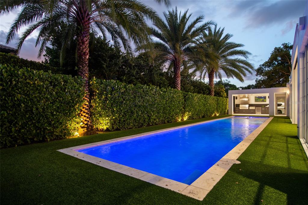 Courtyard, Irrigation System, Lighting, Outdoor Grill, Outdoor Kitchen, Private Mailbox, Rain Gutters, Sliding Doors, Sprinkler Metered