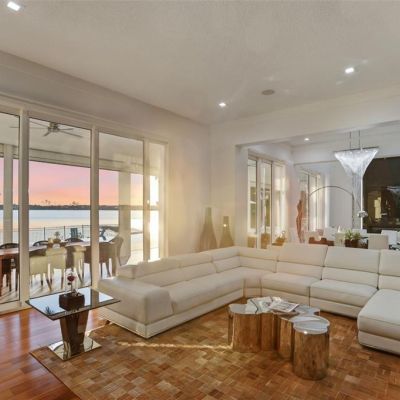 Built-in Features, Crown Molding, High Ceilings, Kitchen/Family Room Combo, Living Room/Dining Room Combo, Open Floorplan, Primary Bedroom Main Floor, Sauna, Solid Surface Counters, Split Bedroom, Stone Counters, Thermostat, Tray Ceiling(s), Walk-In Closet(s), Window Treatments