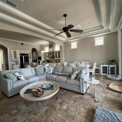 Ceiling Fan(s), Crown Molding, High Ceilings, Kitchen/Family Room Combo, Living Room/Dining Room Combo, PrimaryBedroom Upstairs, Stone Counters, Wet Bar