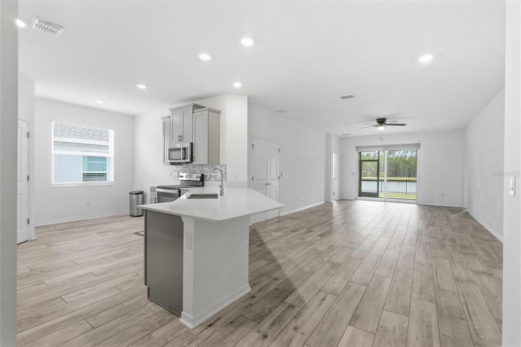 Ceiling Fan(s), Open Floorplan, Primary Bedroom Main Floor, Solid Surface Counters