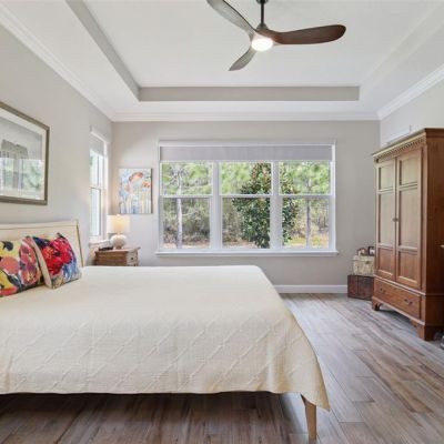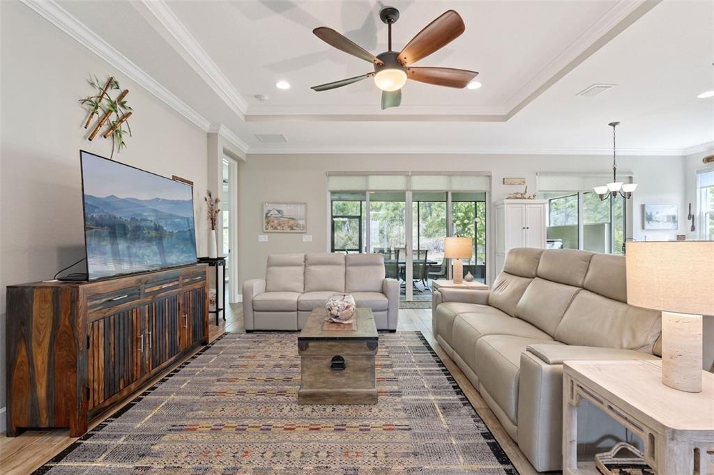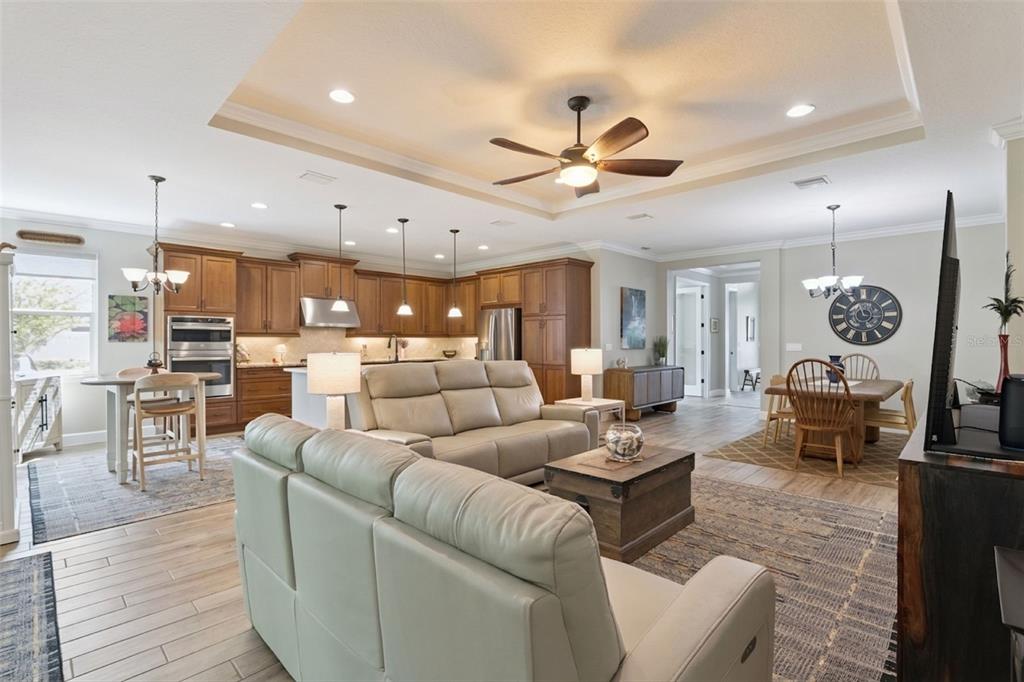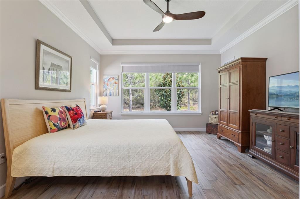 Ceiling Fan(s), Central Vacuum, Crown Molding, Open Floorplan, Primary Bedroom Main Floor, Solid Wood Cabinets, Split Bedroom, Stone Counters, Thermostat, Tray Ceiling(s), Walk-In Closet(s), Window Treatments