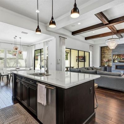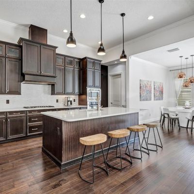 Cathedral Ceiling(s), Crown Molding, Eating Space In Kitchen, High Ceilings, Kitchen/Family Room Combo, Open Floorplan, Primary Bedroom Main Floor, Solid Surface Counters, Solid Wood Cabinets, Split Bedroom, Tray Ceiling(s), Vaulted Ceiling(s), Walk-In Closet(s), Window Treatments