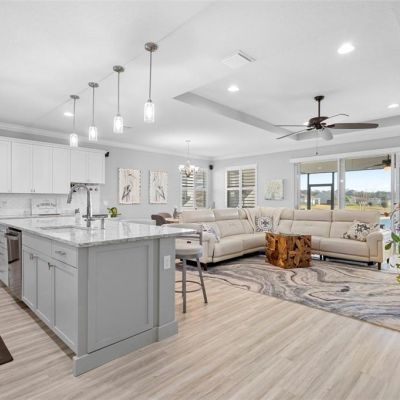 Ceiling Fan(s), Crown Molding, High Ceilings, Kitchen/Family Room Combo, Open Floorplan, Stone Counters, Tray Ceiling(s), Walk-In Closet(s)