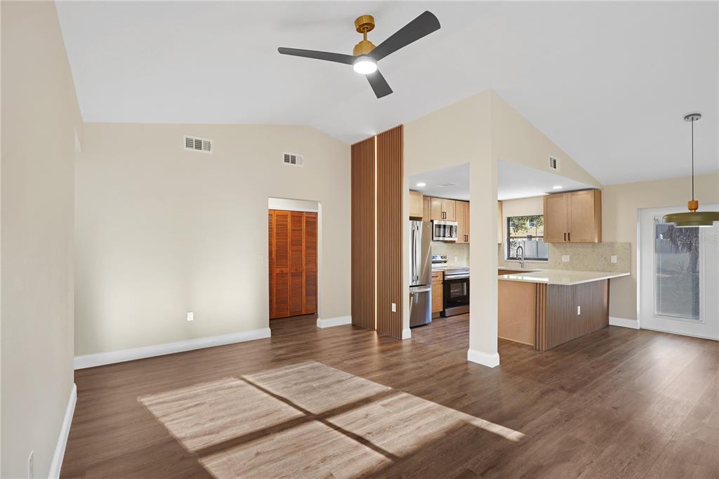 Ceiling Fan(s), Kitchen/Family Room Combo, Living Room/Dining Room Combo, Solid Wood Cabinets, Stone Counters, Thermostat, Walk-In Closet(s)
