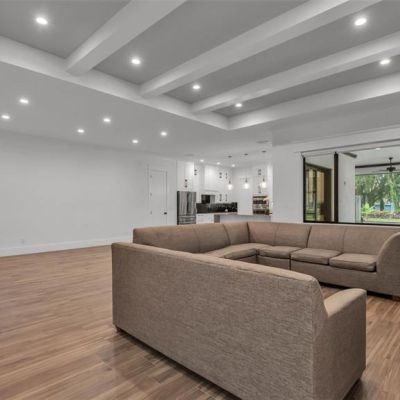 Ceiling Fan(s), Coffered Ceiling(s), High Ceilings, Kitchen/Family Room Combo, Open Floorplan, Walk-In Closet(s), Window Treatments