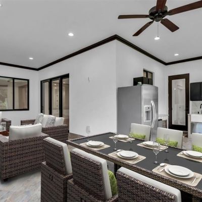 Ceiling Fan(s), Coffered Ceiling(s), High Ceilings, Kitchen/Family Room Combo, Open Floorplan, Walk-In Closet(s), Window Treatments