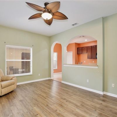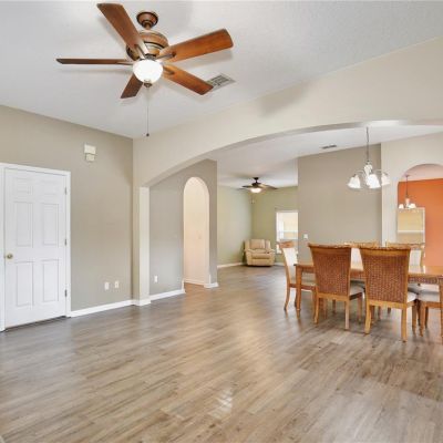 Ceiling Fan(s), Eating Space In Kitchen, High Ceilings, Kitchen/Family Room Combo, Living Room/Dining Room Combo, Open Floorplan, PrimaryBedroom Upstairs, Solid Surface Counters, Solid Wood Cabinets, Thermostat, Walk-In Closet(s)