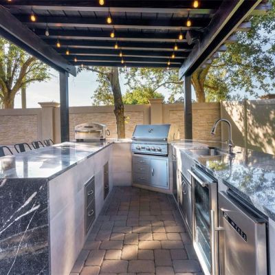 Outdoor Kitchen, Rain Gutters, Sliding Doors