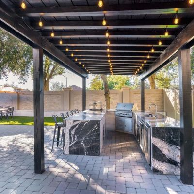 Outdoor Kitchen, Rain Gutters, Sliding Doors