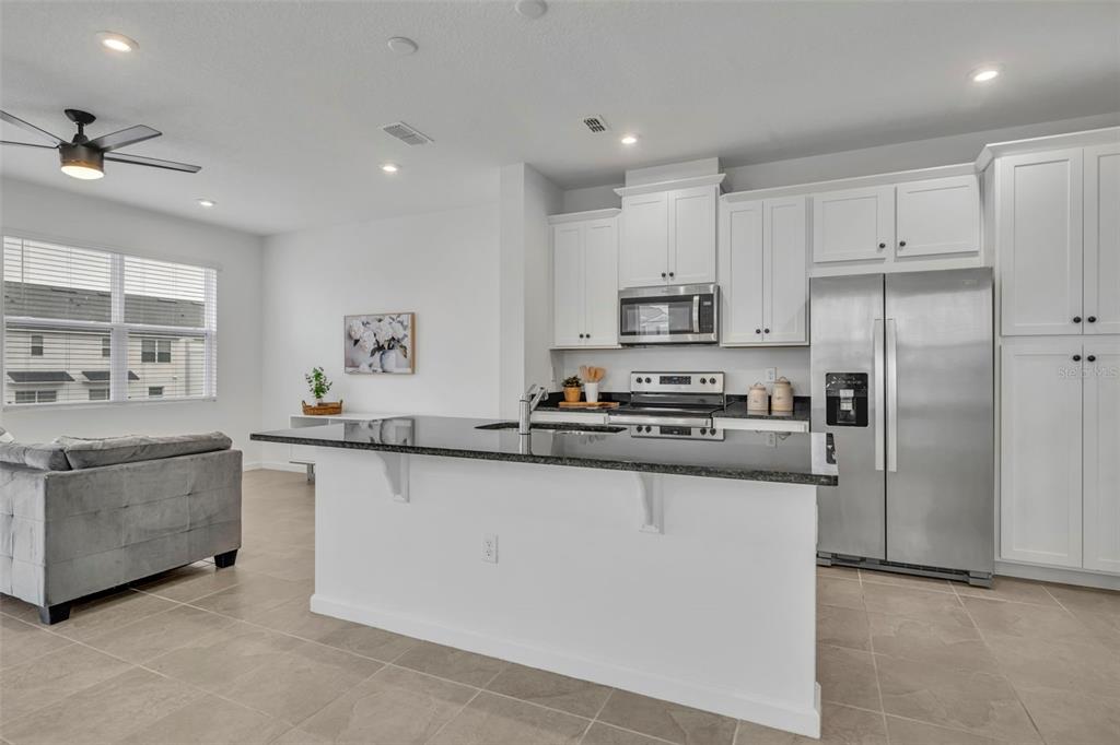 Ceiling Fan(s), Kitchen/Family Room Combo, Stone Counters