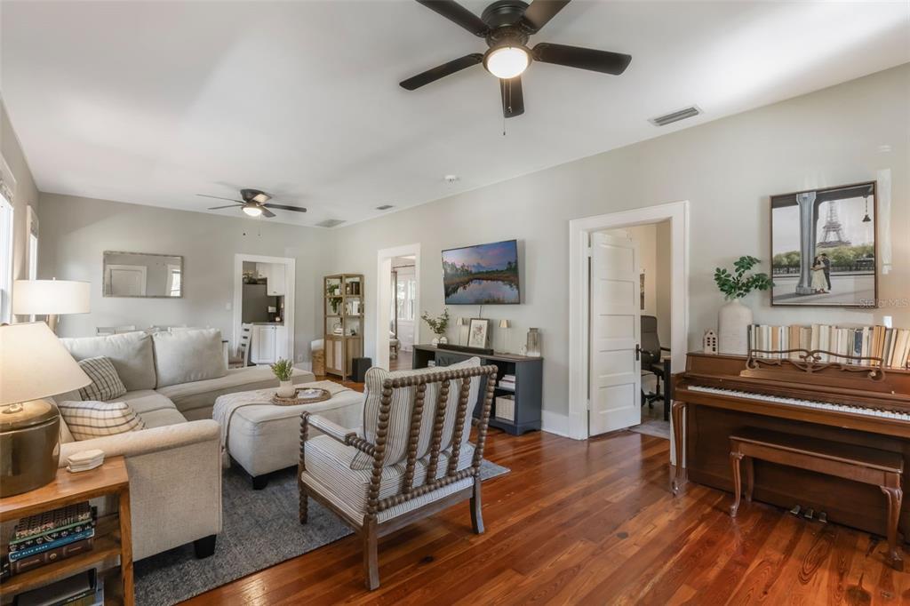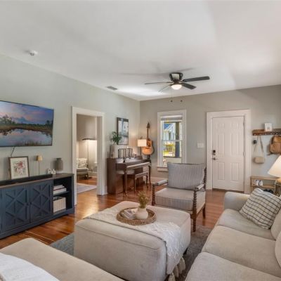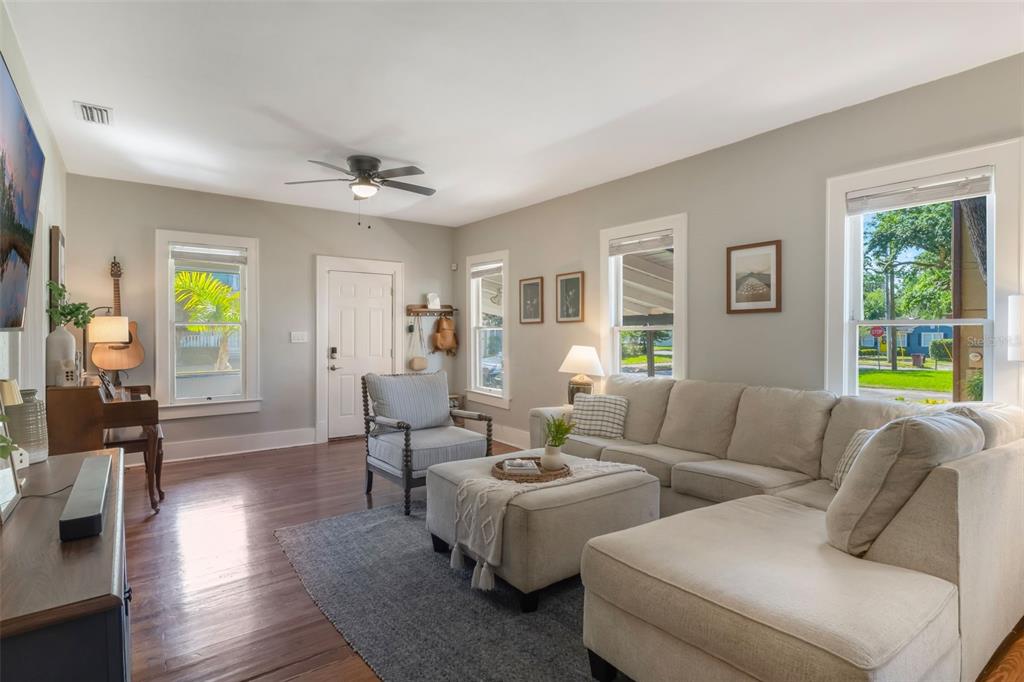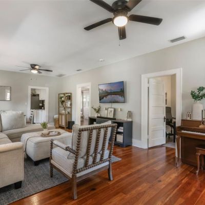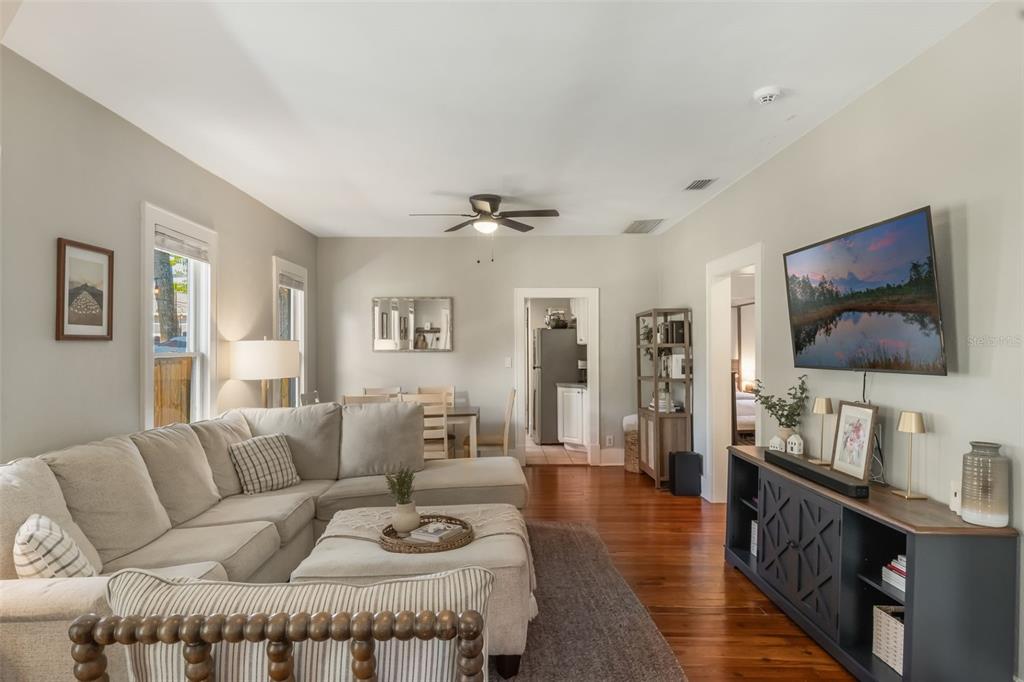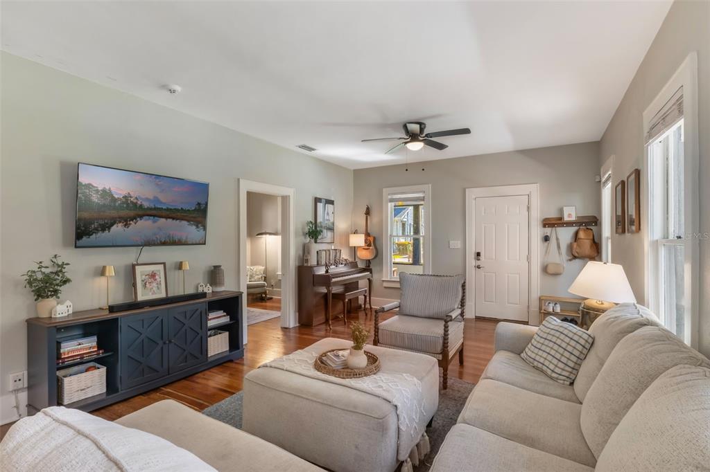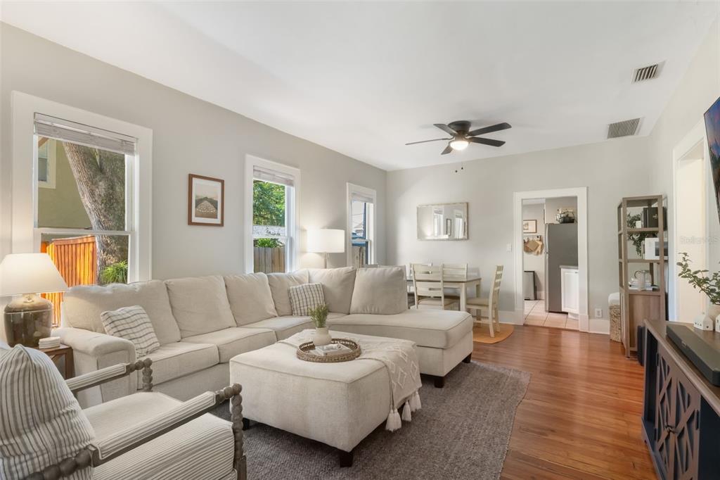 Ceiling Fan(s), Living Room/Dining Room Combo, Open Floorplan, Primary Bedroom Main Floor, Split Bedroom, Walk-In Closet(s), Window Treatments