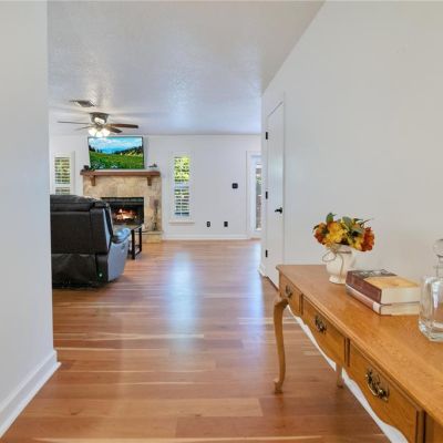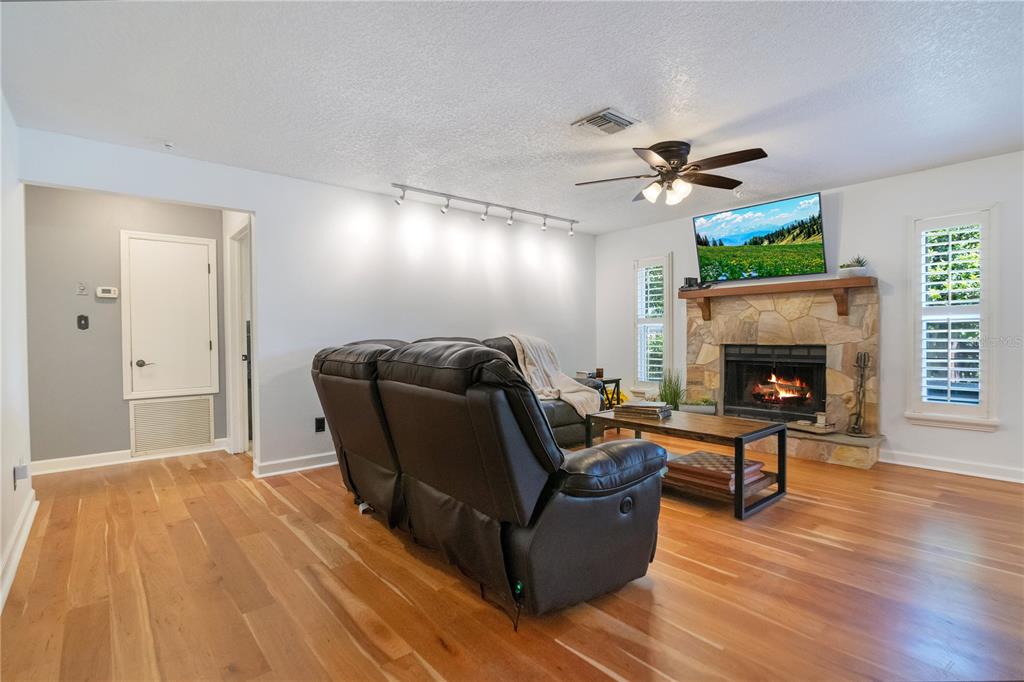 Attic Fan, Ceiling Fan(s), Crown Molding, Living Room/Dining Room Combo, Open Floorplan, Primary Bedroom Main Floor, Stone Counters, Window Treatments