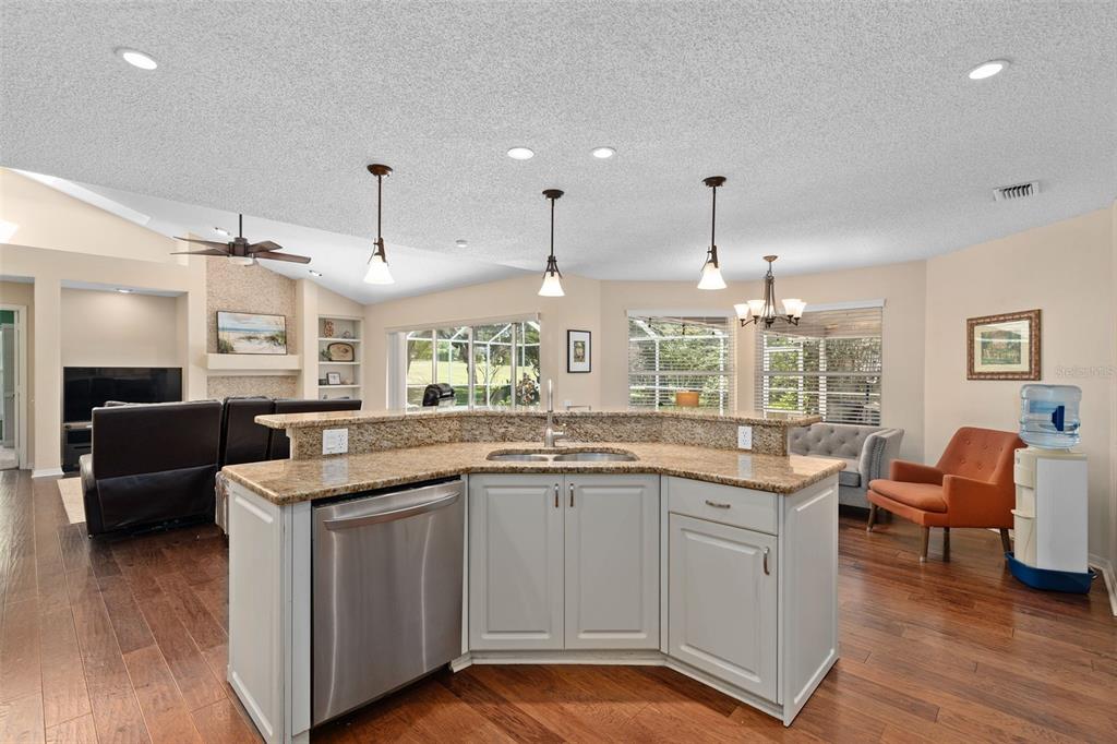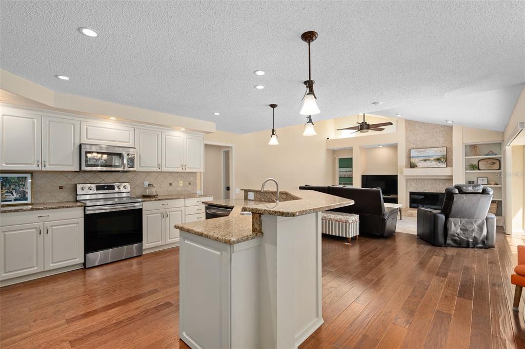 Ceiling Fan(s), Eating Space In Kitchen, High Ceilings, Kitchen/Family Room Combo, Living Room/Dining Room Combo, Primary Bedroom Main Floor, Solid Wood Cabinets, Split Bedroom, Stone Counters, Thermostat, Walk-In Closet(s), Window Treatments