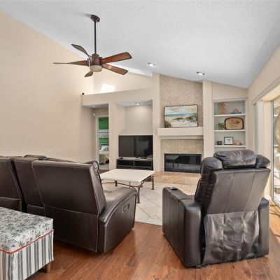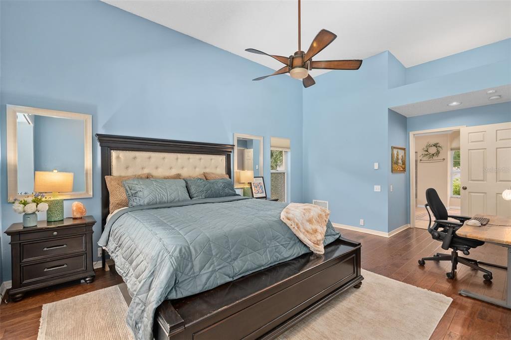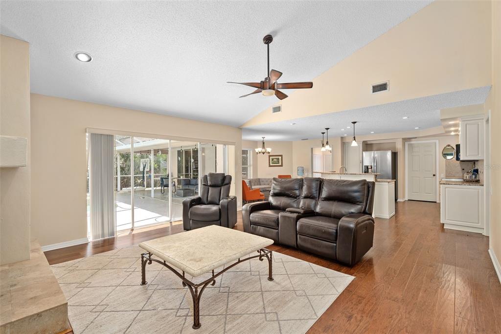 Ceiling Fan(s), Eating Space In Kitchen, High Ceilings, Kitchen/Family Room Combo, Living Room/Dining Room Combo, Primary Bedroom Main Floor, Solid Wood Cabinets, Split Bedroom, Stone Counters, Thermostat, Walk-In Closet(s), Window Treatments