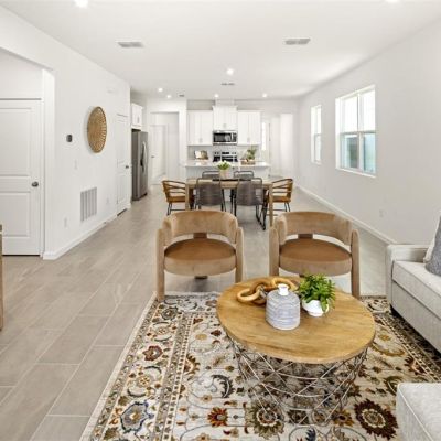 Eating Space In Kitchen, High Ceilings, Kitchen/Family Room Combo, Living Room/Dining Room Combo, Open Floorplan, Primary Bedroom Main Floor, Stone Counters, Thermostat, Walk-In Closet(s)