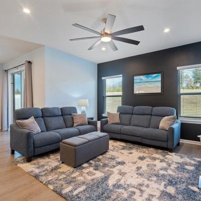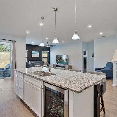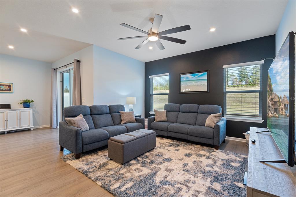Ceiling Fan(s), Eating Space In Kitchen, High Ceilings, Kitchen/Family Room Combo, Open Floorplan, Primary Bedroom Main Floor, Split Bedroom, Stone Counters, Walk-In Closet(s)