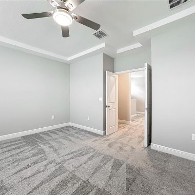 Ceiling Fan(s), Open Floorplan, Split Bedroom, Thermostat, Tray Ceiling(s), Walk-In Closet(s), Window Treatments