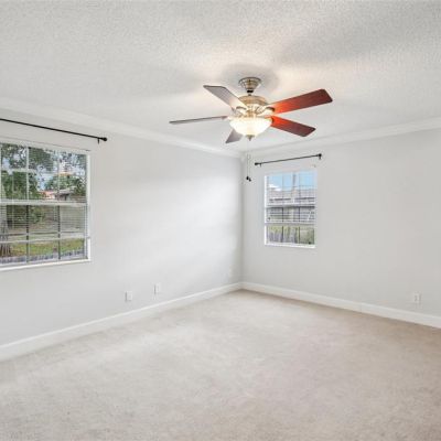 Ceiling Fan(s), Crown Molding, Eating Space In Kitchen, PrimaryBedroom Upstairs, Solid Surface Counters, Stone Counters, Thermostat, Walk-In Closet(s)