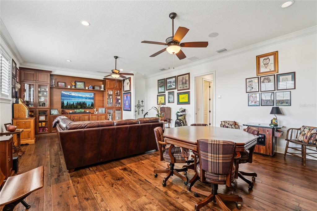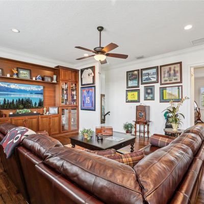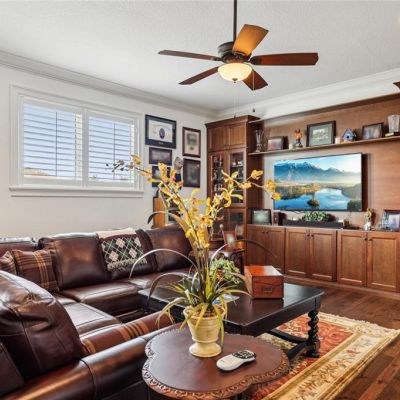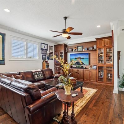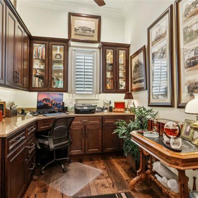 Built-in Features, Ceiling Fan(s), Coffered Ceiling(s), Crown Molding, Dry Bar, Eating Space In Kitchen, High Ceilings, Kitchen/Family Room Combo, Open Floorplan, Primary Bedroom Main Floor, Solid Wood Cabinets, Split Bedroom, Stone Counters, Tray Ceiling(s), Walk-In Closet(s), Window Treatments