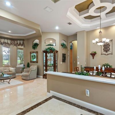 Central Vacuum, Crown Molding, Eating Space In Kitchen, High Ceilings, Kitchen/Family Room Combo, Living Room/Dining Room Combo, Primary Bedroom Main Floor, Solid Surface Counters, Split Bedroom, Stone Counters, Tray Ceiling(s), Walk-In Closet(s), Window Treatments