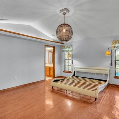 Cathedral Ceiling(s), Ceiling Fan(s), Chair Rail, High Ceilings, Primary Bedroom Main Floor, Solid Surface Counters, Solid Wood Cabinets, Split Bedroom, Stone Counters, Thermostat, Vaulted Ceiling(s), Walk-In Closet(s), Window Treatments