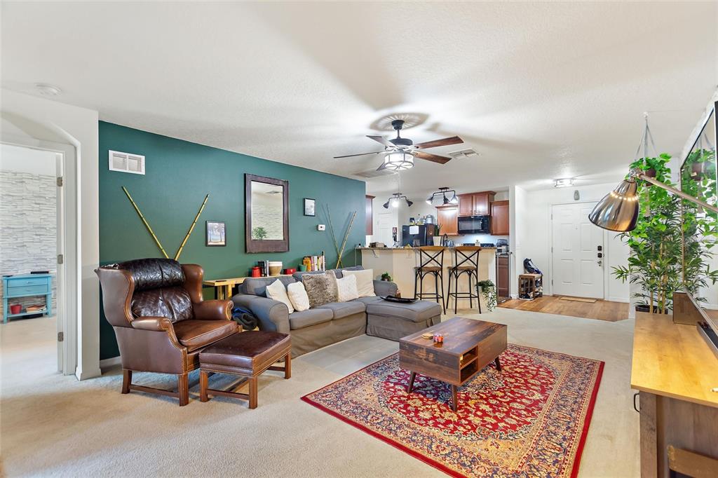 Ceiling Fan(s), Eating Space In Kitchen, Open Floorplan, Solid Surface Counters, Split Bedroom, Thermostat
