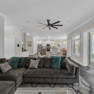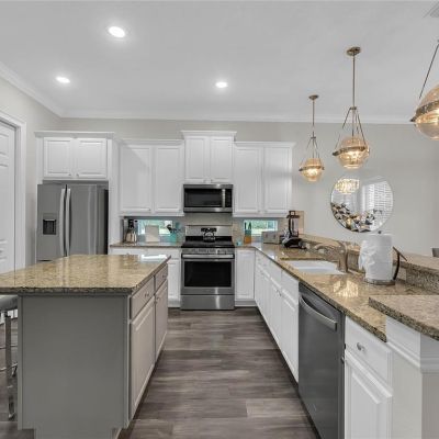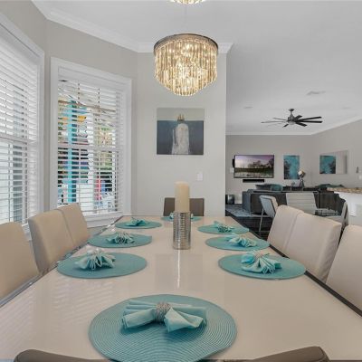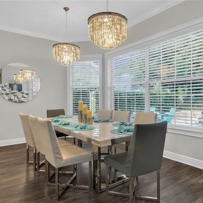 Living Room/Dining Room Combo, Stone Counters, Window Treatments