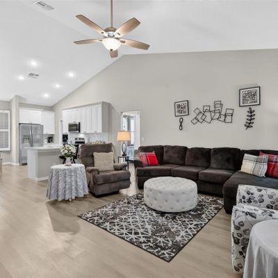 Cathedral Ceiling(s), Ceiling Fan(s), Eating Space In Kitchen, Open Floorplan, Primary Bedroom Main Floor, Solid Surface Counters, Split Bedroom, Vaulted Ceiling(s), Walk-In Closet(s), Window Treatments