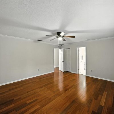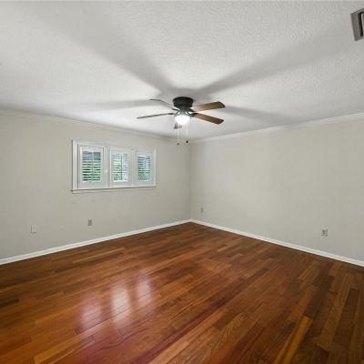 Built-in Features, Ceiling Fan(s), Crown Molding, Eating Space In Kitchen, Kitchen/Family Room Combo, Solid Surface Counters, Solid Wood Cabinets, Stone Counters, Thermostat, Walk-In Closet(s), Window Treatments